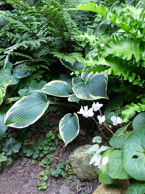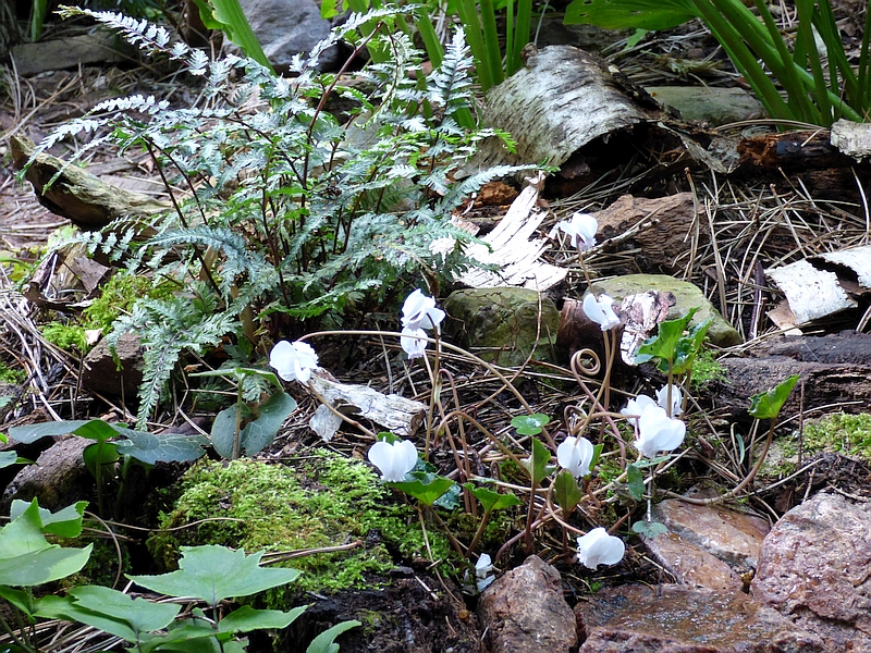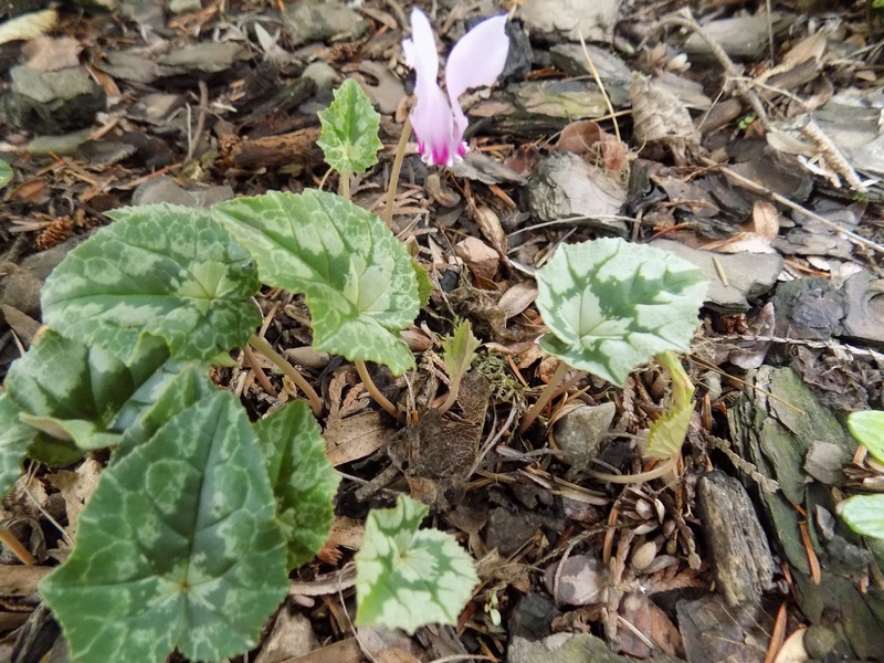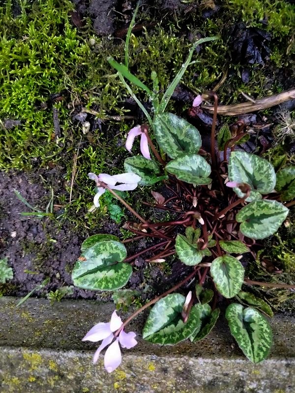 Pojawiły się natomiast liście i pierwszy kwiat cyklamenu cypryjskiego, ale i jego mus przesadzić, bo tego z kolei tłamsi konkretnie języcznik 'Cristatum'... stąd i sensownych zdjęć brak