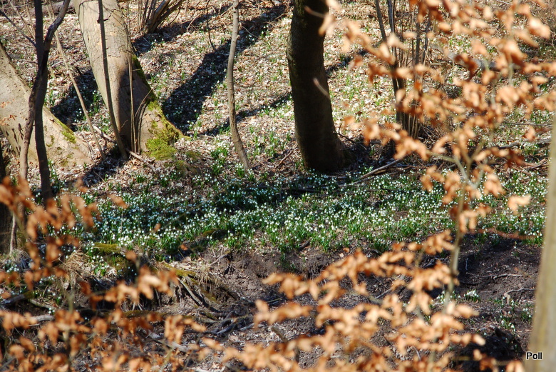 W wielkanocny poniedziałek, korzystając z pięknej pogody, odwiedziałam Śnieżycowy Jar, rezerwat przyrody położony w Wielkopolsce, w okolicach wsi Starczanowo. Rezerwat ten zasługuje na swój oddzielny wątek, bo widoki, jakie można tam ujrzeć, zapierają dech w piersiach. Śnieżycowy Jar, który jest naturalnym stanowiskiem śnieżycy wiosennej (Leucojum vernum), obejmuje nieco ponad 2 hektary powierzchni lasu, znajdującego się na terenie poligonu wojskowego Biedrusko. Zwiedzać go można więc tylko w określonych terminach ( w weekendy) i gdy nie odbywają się ćwiczenia wojskowe. W tym roku, teren był wyłączony ze zwiedzania (manewry) od 1 do 30 marca, więc wielkanocny poniedziałek był optymalnym terminem do odwiedzenia tego miejsca. Z informacji o 'postępie; kwitnienia śnieżyc w tym rezerwacie wynikało, iż już 22 marca w trakcie kwitnienia było około 20% populacji a dość wysokie temperatury spowodowały, iż rozkwit w ostatnich dniach marca mocno przyspieszył.