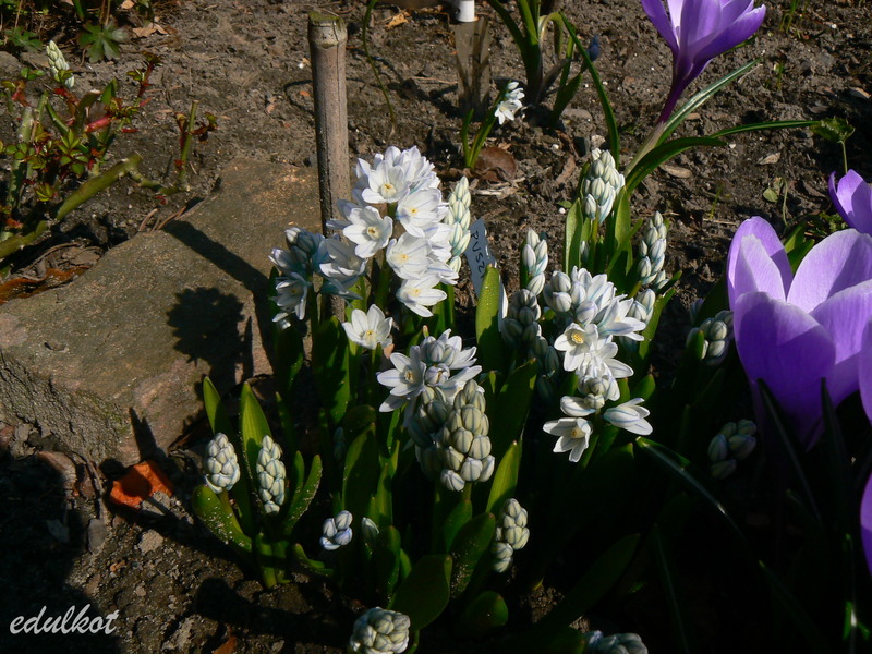 Zakwitły mi pierwsze Puszkinie. Na razie tylko dwie, ale okazało się, że jedna z nich jest biała :woohoo: , czyli odmiana 'Alba'. Bardzo sympatyczna roślina wiosenna. :)