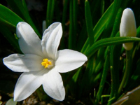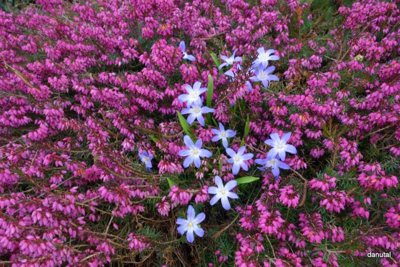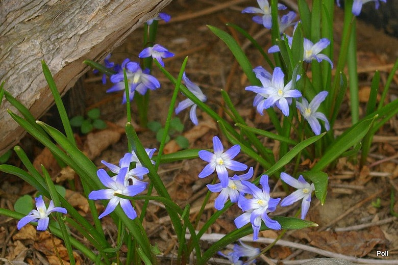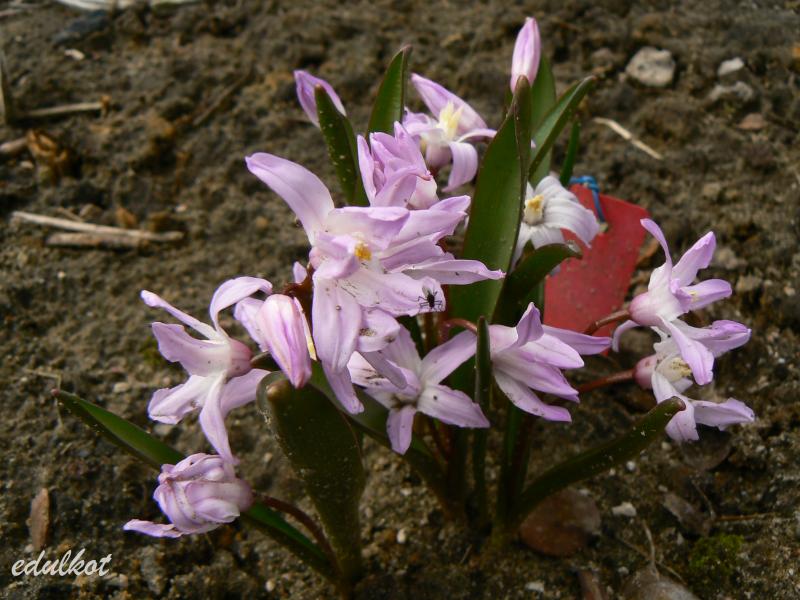 Chionodoxa sardensis); do 22 kwiatków na łodyżce, koloru akwamaryny (gencjanowo-niebieski) z bardzo malutkim białym oczkiem.