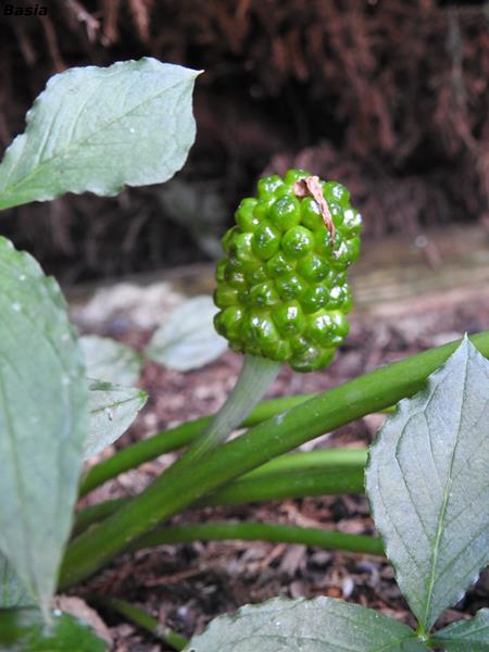 To ewidentnie pinelia, z tego, co widzę na zdjęciu, Pinellia tripartita . U mnie, jak inne dwa gatunki, nie tylko zimuje, ale się rozsiewa. :)