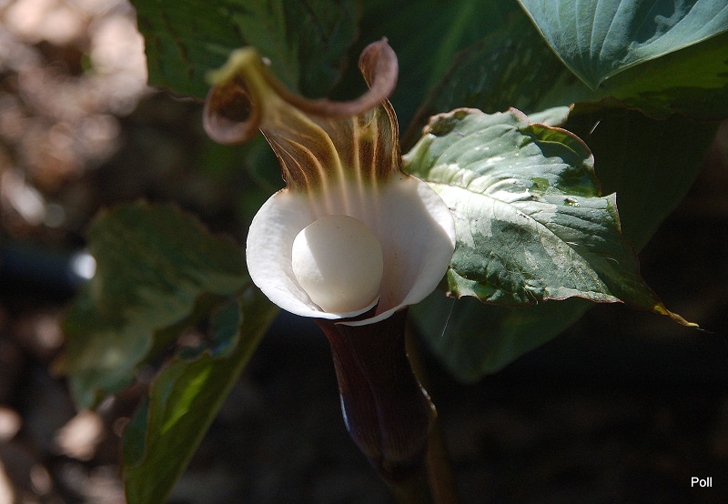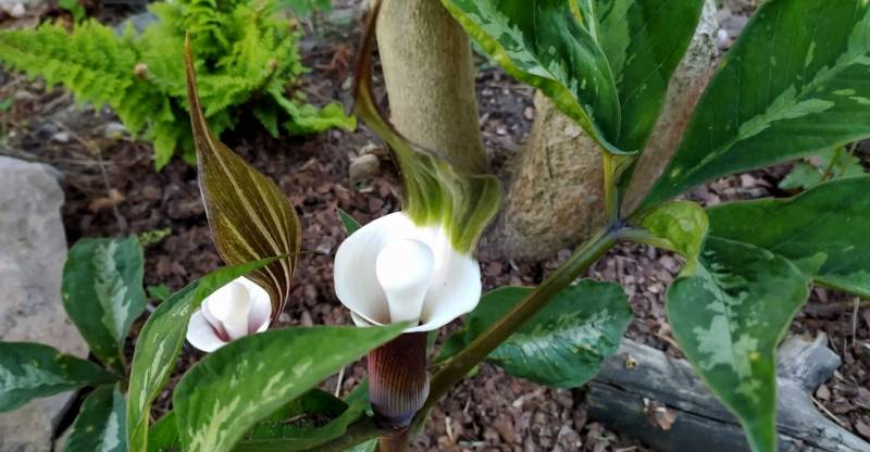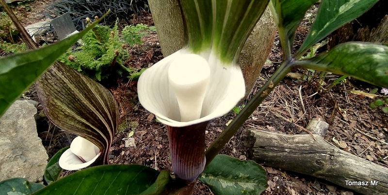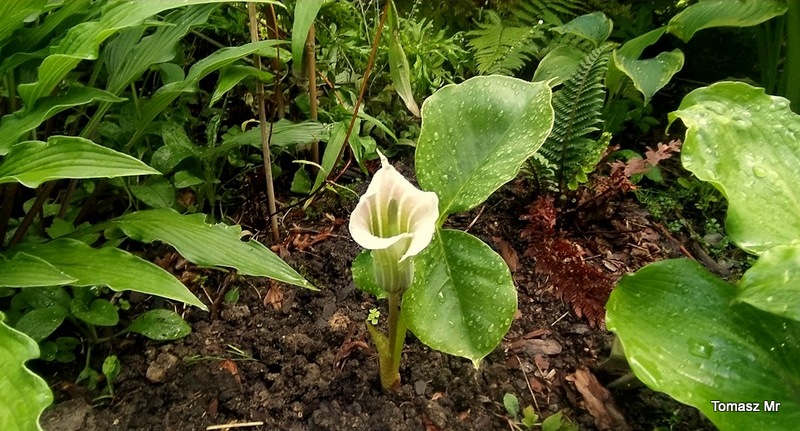 Całe szczęście, nic się nie stało, nawet przy niewielkich przymrozkach i Arisaema sikokianum rozpoczęła kwitnienie. Zimowała, jak w ubiegłym roku, w gruncie, nawet jej specjalnie nie zabezpieczałam, bo nie było mrozów większych, niż -17C.