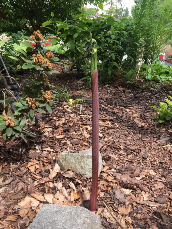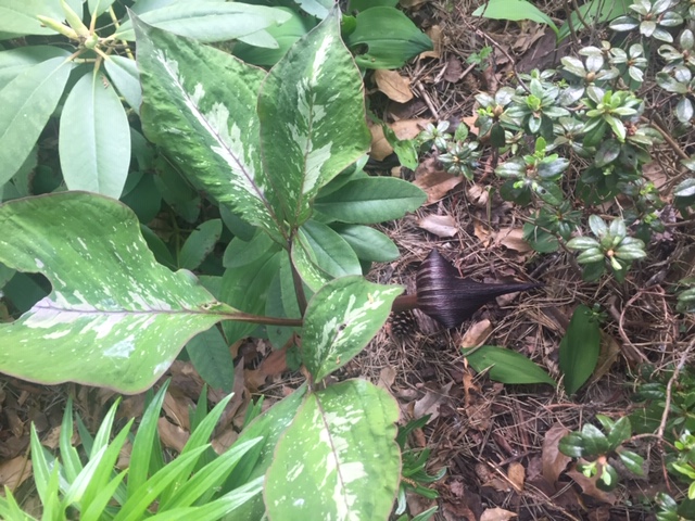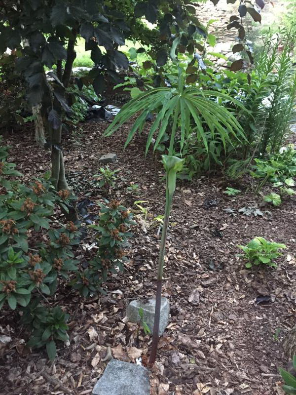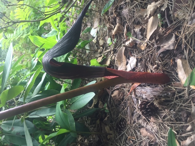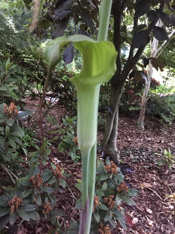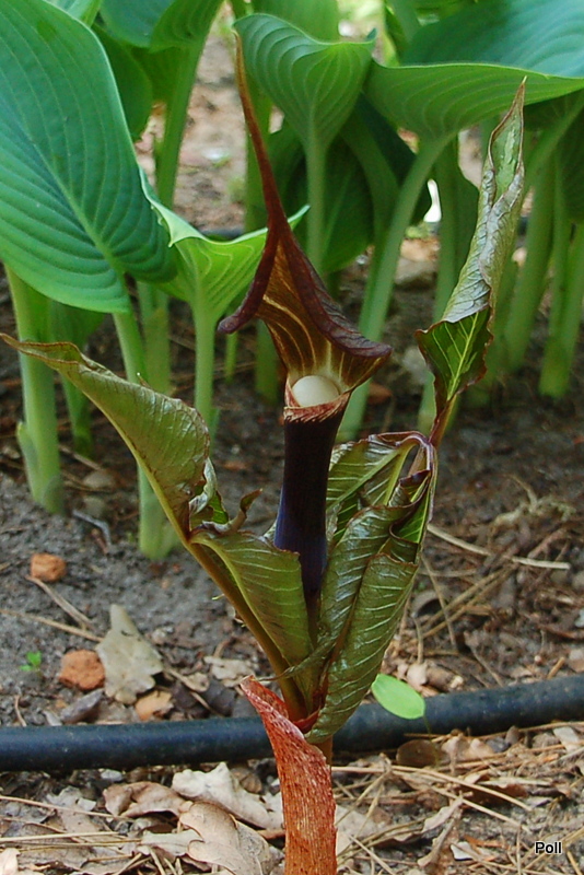 Wyrosła u mnie niemal na ścieżce Porównując z fotkami z internetów, wynikałoby, że to chyba Arisaema tortuosum, której nigdy nie kupowałam i nie miałam. Roślina jest bardzo wysoka- spokojnie mierzy 85-90 cm .