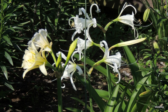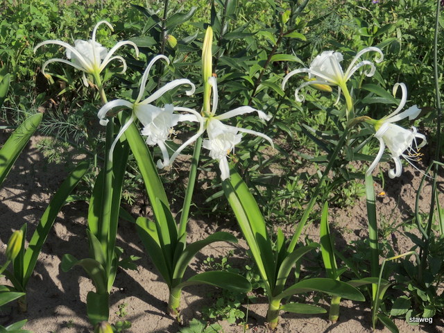 Bardzo wrażliwa na przymrozki. Cebule należy wykopać przed wystąpieniem przymrozków, zazwyczaj na początku października (mimo zielonych liści) i przenieść do przechowalni. Mięsiste korzenie można skrócić (ostrym nożem, sekator je zgniata) do ok. 10 cm. Jest wielu przeciwników skracania korzeni, ale moje doświadczenie pokazuje, że łatwiej przechowywać takie cebule, a wcale im to nie szkodzi. W przechowalni powinna być zachowana temperatura nie wyższa niż 10 stopni C, tak mówi literatura przedmiotu. Moje - leżąc przez zimę w blokowej piwnicy - mają temperatury od 5 do 15 st.C , a zachowują żywotność i pięknie kwitną. Czasem zbyt wcześnie zaczynają wyrastać pędy, ale wtedy po posadzeniu, bardzo szybko zakwitają.