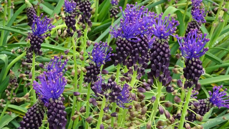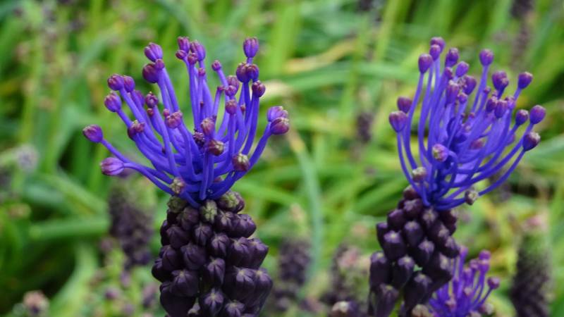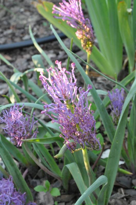 Kwiaty: liliowo-fioletowe, nitkowate, zupełnie niepodobne do żadnych szafirków.