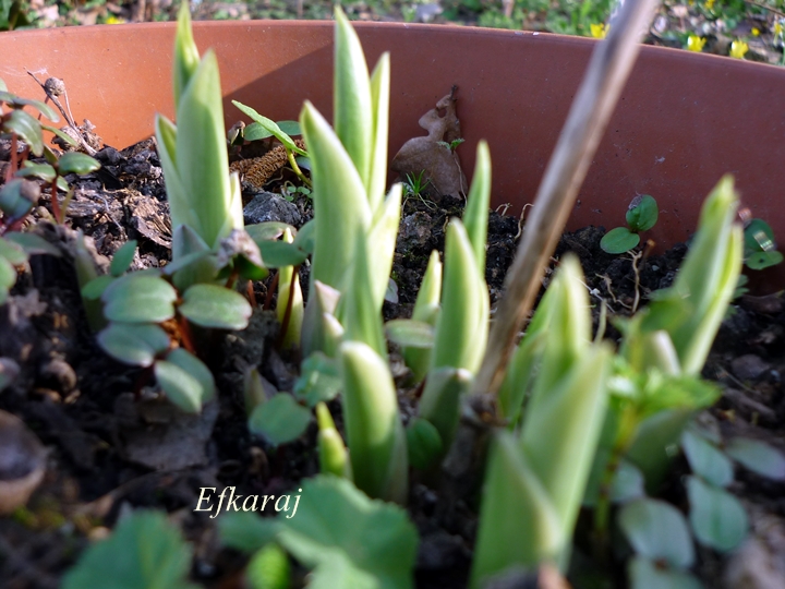 U mnie też już wychodzą, ale sama też już nie mogę wytrzymać i zaglądam ile kłów wyłazi, zaraz potem robię kopiec kreta. Trzeba już założyć cieniówkę.