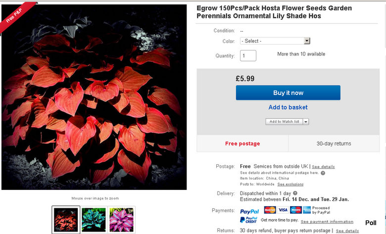 Ze Chińczycy wystawiają takie nasiona, to się nie dziwię - chcą zarobić, choć nie do końca uczciwie. Ale, że są naiwni, którzy kupują? Fakt, 0,99f i darmowa przesyłka, to żadne pieniądze dla Brytyjczyka. Pewien znany mi pan (niemal rodzina) , czasem odwiedza mnie w ogrodzie a odwiedzając, zapadł na chorobę hostową. Dałam mu sporo sadzonek, ale on, znany z wybujałej ambicji, zapytał kiedyś Marcina, jakiej hosty nie mam. Marcin mu odparł, że on nie wie, bo chyba mam wszystkie :lol: , co oczywiście nie jest prawdą.Mój prawie-rodzina pan, postanowił więc zakupić- właśnie na eBay'u - nasiona host,którymi mógłby mnie zakasować. Pierwsze dwie przesyłki przyszły na mój adres, bo mieszkam pod 'A' a on pod 'gołym' numerem :silly: Zapytałam, co tam ciekawego zakupił, powiedział, ze nasiona niespotykanych host,m.in białej. Powiedziałam, że mam przecież białe hostyi mógł powiedzieć, to za mały odrobek dałabym mu kawałek tej i jeszcze inne, ale on stwierdził, ze kupił nie tylko nasiona białej, ale i innej, jakiej na bank nie mam. :blink: Może myślał o tej fioletowej? 2smiech Żebybyło śmieszniej, zrobiłam mu niegdyś wykład o sianiu host i uprzedziłam, czego może oczekiwać. Najwyraźniej, nie uwierzył mi. :nie_wiem