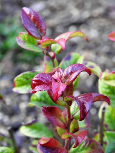 Młody kiścień wawrzynowy 'Rainbow' , który trafił do mnie w prezencie od Beatki, bardzo dzielnie znosi złe nastroje pogody. Co prawda, zdjęcie pochodzi sprzed kilku dni, ale po wczorajszych mrozach wygląda równie ładnie. Dałam mu dobrze osłonięte stanowisko, bo większość kiścieni na moim wygwizdowie, brzydko wygląda po zimach.