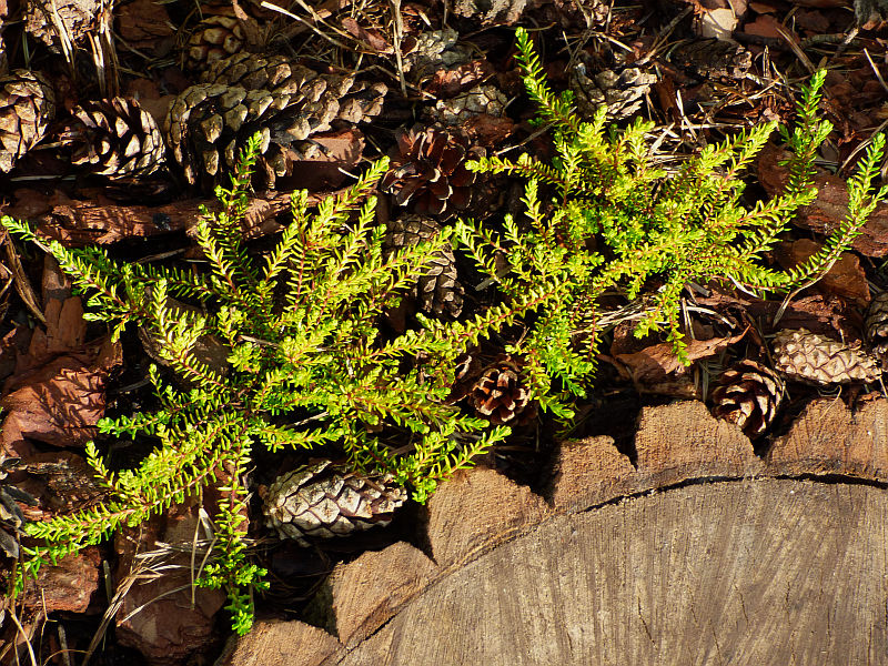 'Bernstein' o liściach latem żółto zielonych, a jesienią i zimą brązowo żółtych