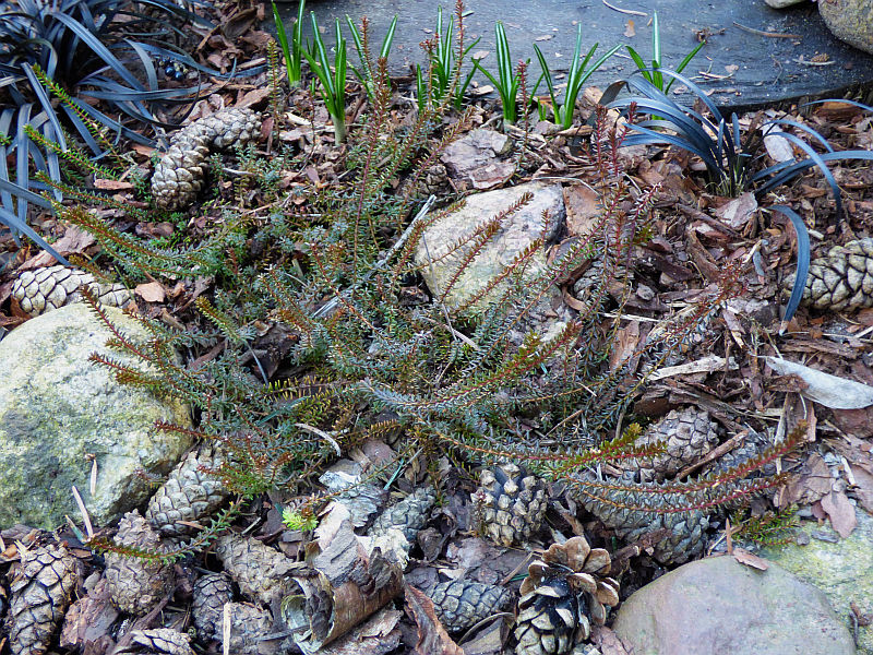 Liście: igiełkowe... skrętoległe i gęste, czasem okółkowe... krótkoogonkowe, skórzaste, zawsze zielone, błyszczące... bardzo silnie podwinięte na brzegu... młode nieco gruczołkowane, starsze nagie