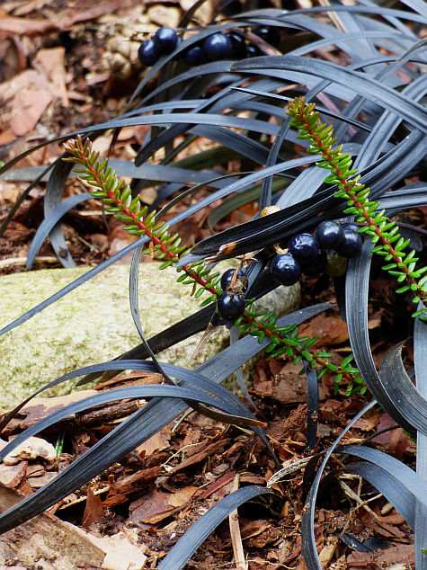 Owoce: kuliste, czarne, mięsiste i soczyste jagody, przypominające owoce borówki amerykańskiej, o średnicy do 7–8 mm... jadalne, lepsze w smaku stają się po przymrozkach... stanowią dobre źródło antocyjanów