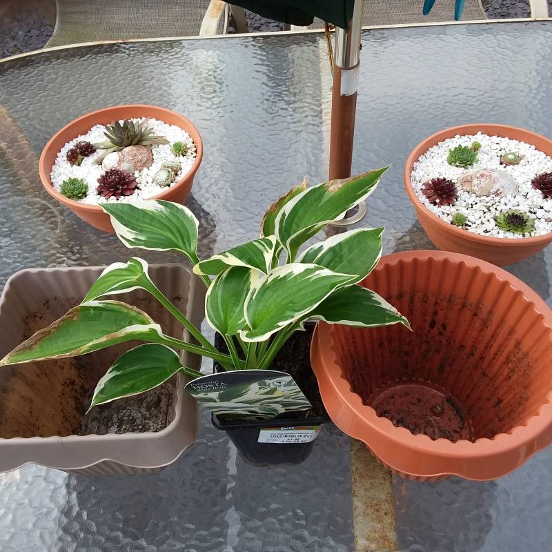 Chyba Ela już pisała, że hostom wystarczają donice niewiele większe od ich bryły korzeniowej. Tylko czy te donice mają w dnie otwory, czy to są osłonki ? Muszą być otworki i na dno trzeba wsypać kamyczki lub potłuczone ceramiczne donice, albo keramzyt, żeby zapewnić roślinom odpływ nadmiaru wody inaczej zgniją. Kiedy chcę wykorzystać plastikowe osłonki jako donice syn wywierca mi otwory wiertarką.