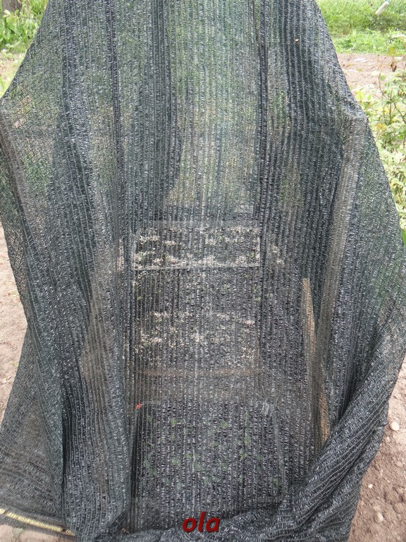 Nad zakopaną skrzynką z doprawioną ziemią zrobiłam wigwam z cieniówki .