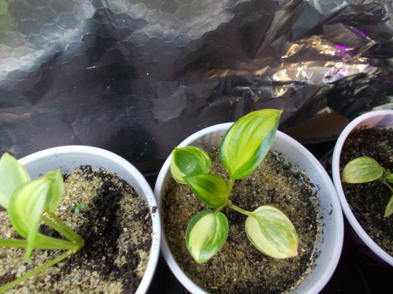 Tego z powodu stresu nie pamiętam. Rosną u mnie w kilku przegródkach w trzech wielopakach. Dziś olśnienie! Mój pierwszy chyba streaked z nasion zwykłych host.