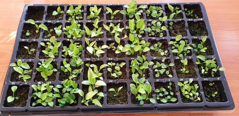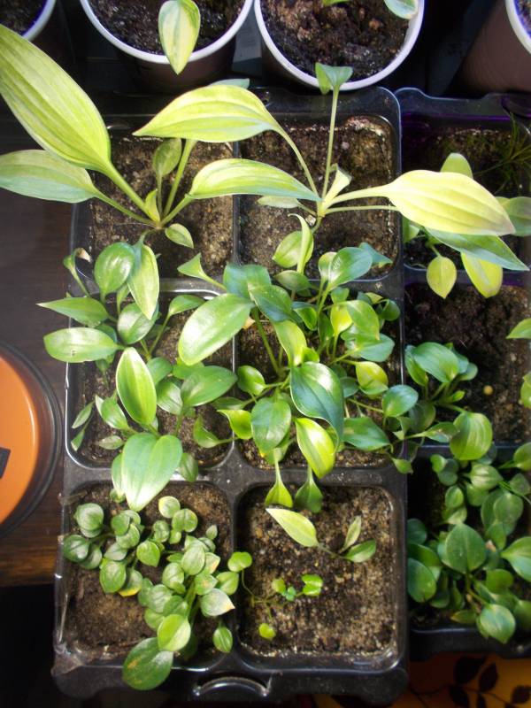 Nasiona host sieję już któryś rok ,ale dopiero teraz zauważyłam ,że powinno się je pikować po trzecim liściu . Przyśpiesza to ich wzrost , choć początkowo przez kilka dni tego nie widać . Pierwsze moje siewki przepikowałam z nasion , które siałam jako ostatnie pod koniec grudnia i kilka z pierwszych sianych w październiku . Teraz widzę jak ładnie przyrastają a nowe listki są dużo większe od tych wcześniejszych . Wczoraj przepikowałam ostatnie siewki z Breeders Love , Revolution , Lakeside Looking Glass i 3 najciekawsze z Candy Dish , choć wcale miałam tego nie robić , bo na stole miejsca już nie było . Ale jakoś wszystko się zmieściło .