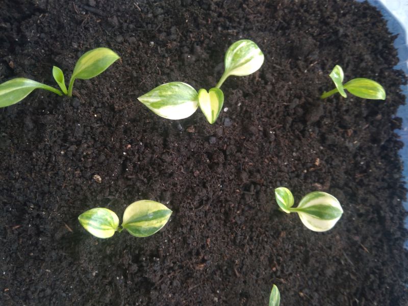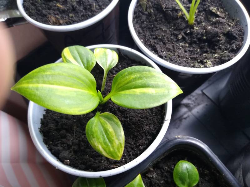Polu dzięki , hosty z siewu to bardzo fajna zabawa , a w moim przypadku to już uzależnienie . Prawda jest też taka ,że trzeba być w domu i dłuższe wyjazdy odpadają . Ponieważ mój poziom wtajemniczenia w zapylanie kwiatów jest zerowy , zdana jestem tylko na nasiona host streaked lub zakup lepszych nasion . W tamtym roku eksperymentowałam jeszcze z nasionami z moich host , rezultat był dobry ,ale w tym wyczerpały mi się pomysły co mogłabym wysiać , by urodziły się jakieś fajne krzyżówki . To znaczy nie całkiem , bo wysiałam hostę Robin Hood , Fingerprint , Pathfinder czy Silver Kabitan . Wiele host nie kwitło ,a nawet jak zakwitły to nie zawiązały nasion . Robin Hood wykiełkował świetnie ,ale wszystko jest zielone a tylko jedna siewka żółta . Żółtą zostawię ,a reszta pójdzie na kompost . Fingerfrint miał mało nasion ,więc jest tylko kilka siewek i jedna wygląda jakby inaczej . Pathfinder , to wiadomo same żółto zielone ,ale ile przetrwa to nie wiadomo , bo za mało chlorofilu w liściach i będą padać jak muchy
