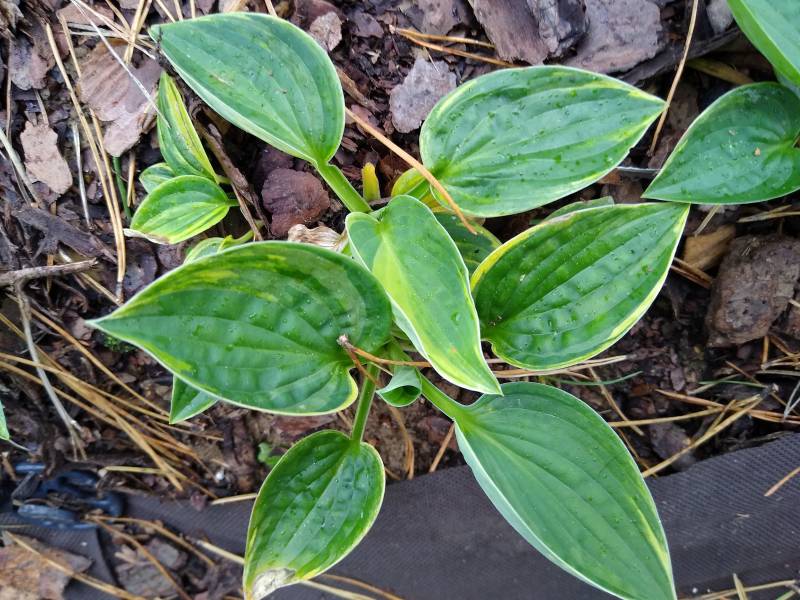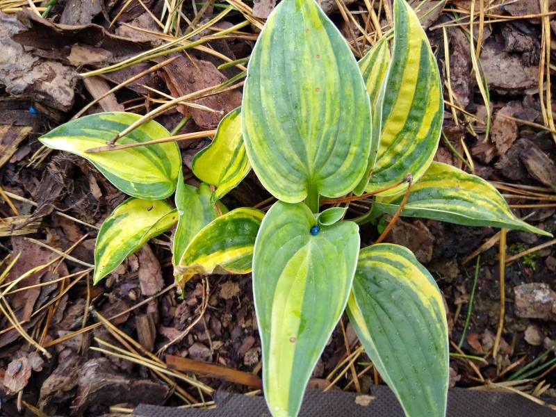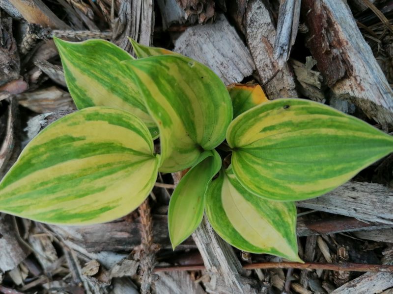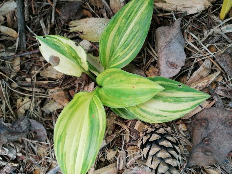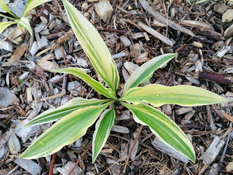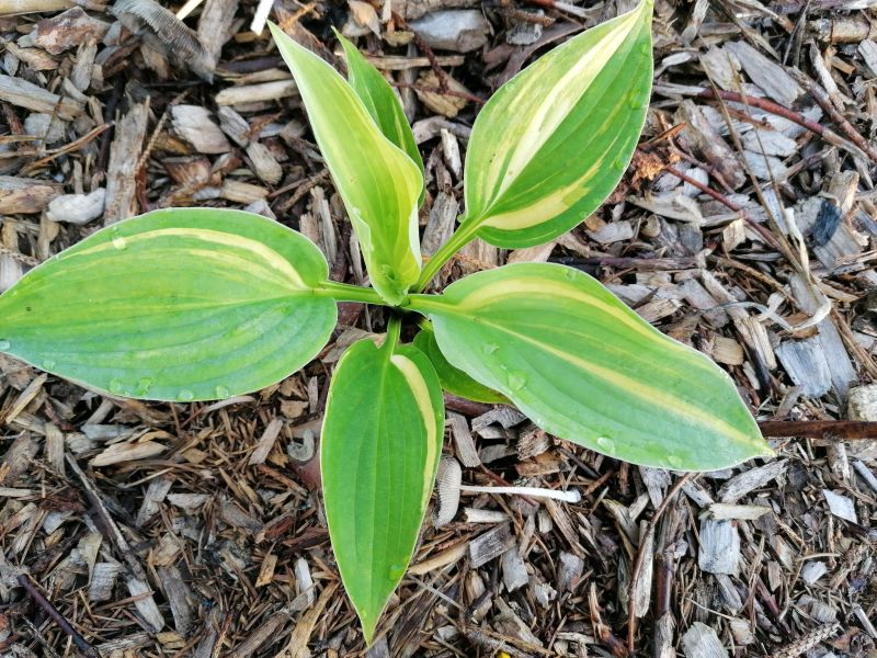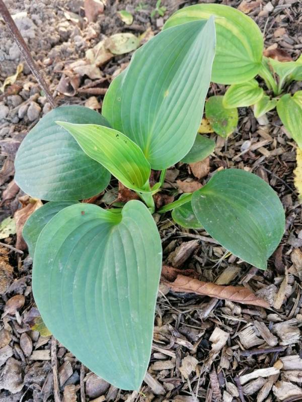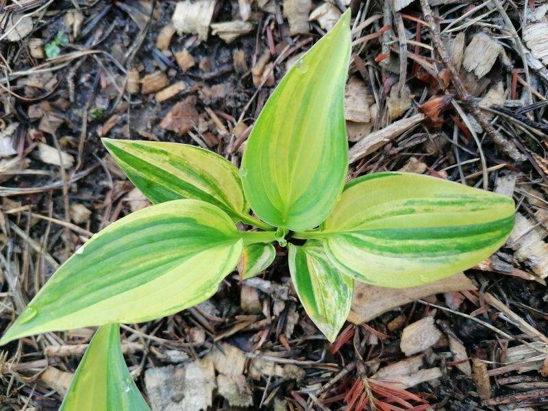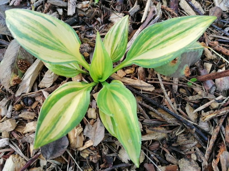 Siewka hosty Pete's Design. Wycięłam jej wyrastający kwiatostan. Nadal jednokłowa ale wypuściła sporo liści.