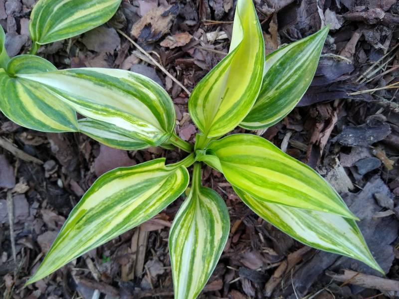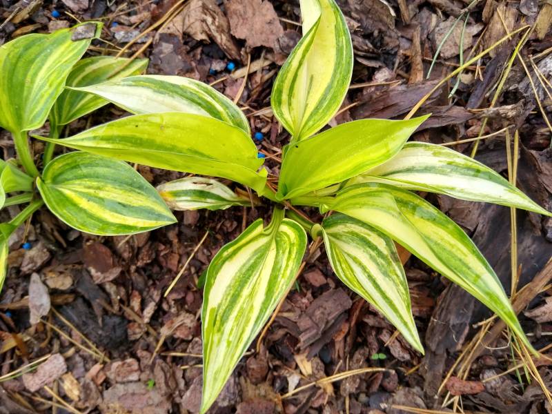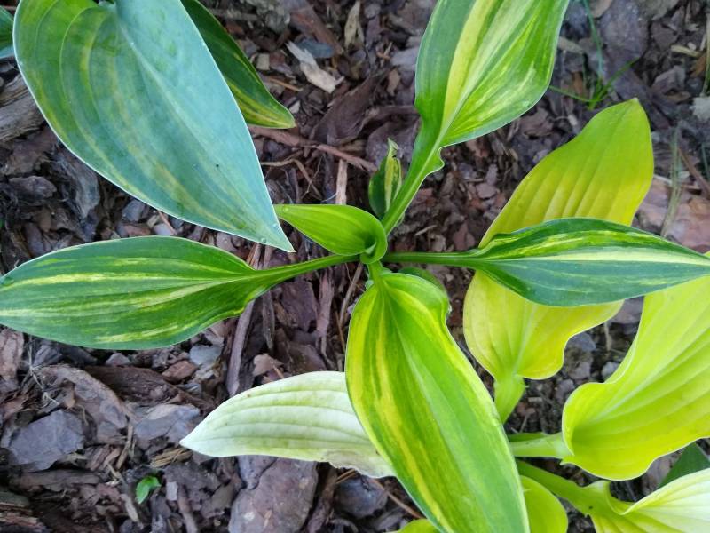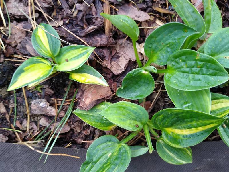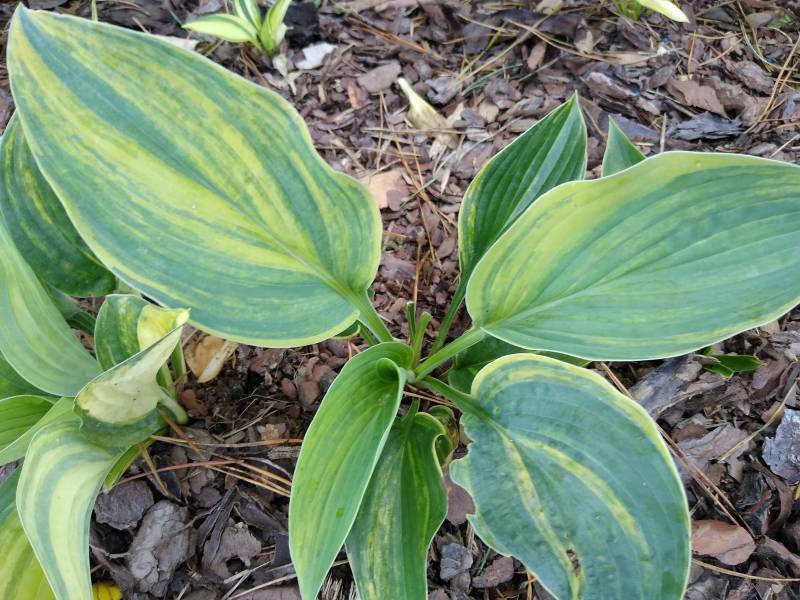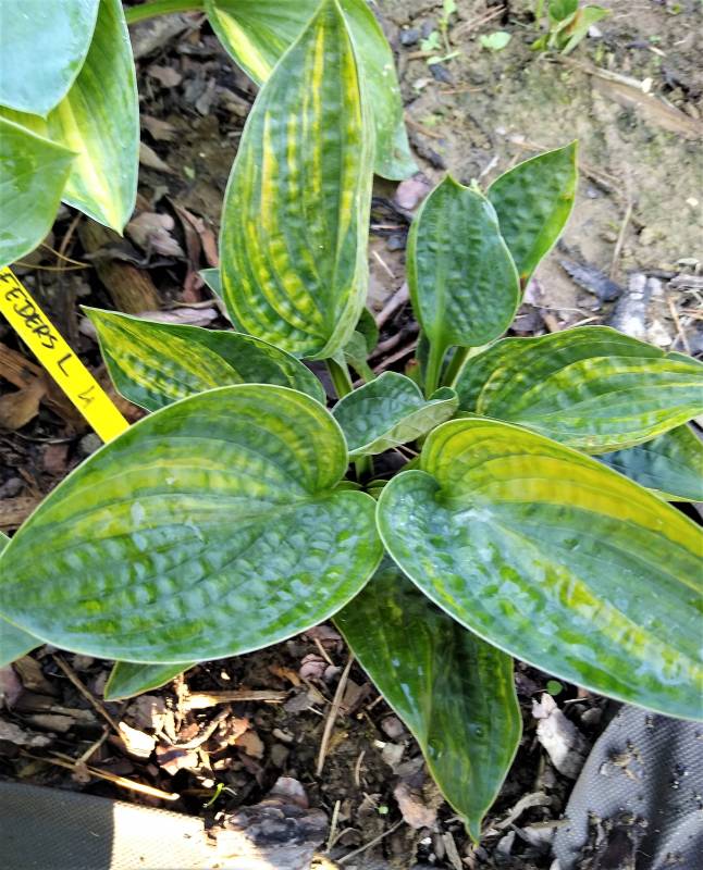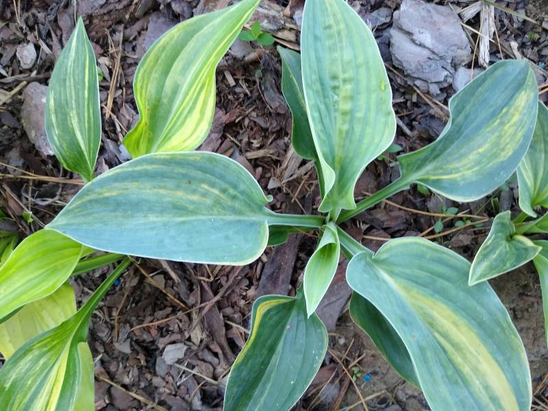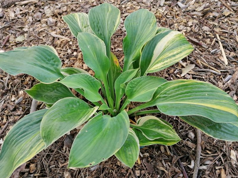Siewka hosty Pete's Design. Wycięłam jej wyrastający kwiatostan. Nadal jednokłowa ale wypuściła sporo liści.
