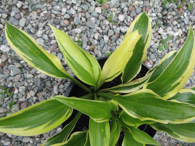 Gdyby cały odrost , który można oddzielić, miał kolor tego liścia, było by pieknie :woohoo: Niestety, to jeden liśc i to zapewne u rośliny z in vitro? :unsure: W laboratoriach kultur tkankowych wyłowiono niejedną ciekawą odmianę hosty.