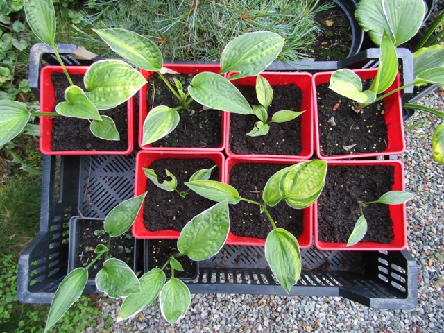 Nad szkółką w lipcu br. przeszło katastrofalne gradobicie, :burza kule gradowe miały nawet wielkość piłek do tenisa ziemnego...wszystko zniszczone. Uszkodzone hosty zostały przycięte??? Nie ma pewności czy nie wykonano tego zabiegu "JEDNYM NOŻEM!!!" krecigl Z tego względu będą rosły w donicach aż będziemy mieli