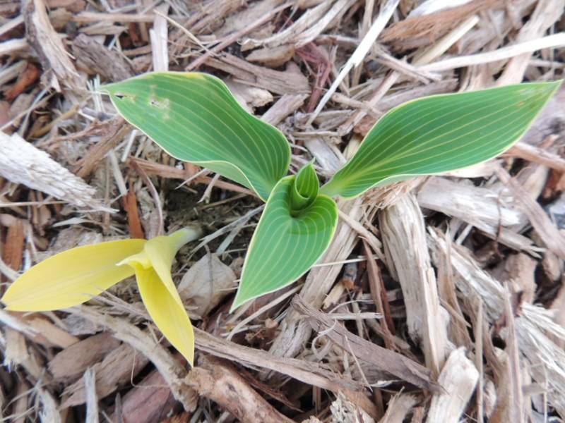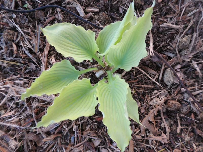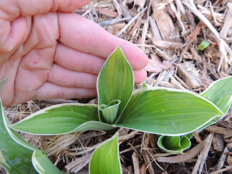 Hosta Seducer pokazuje, że może czasami wyglądać jak Hosta 'Good Golly Miss Molly' odrost malutki i wątły..."ciąć czy nie ciąć oto jest pytanie?"