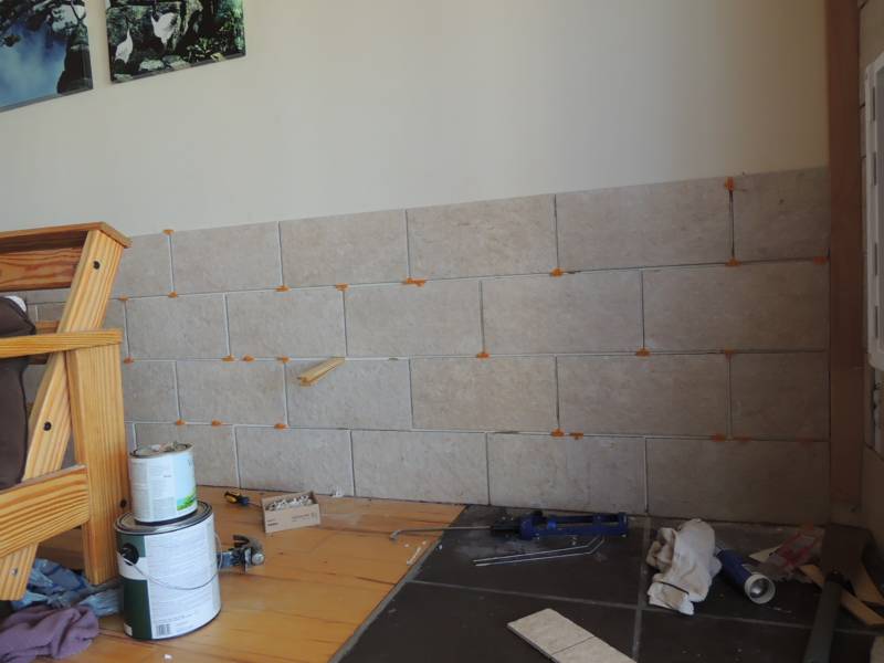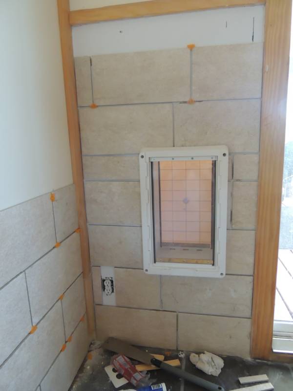 Kiedy koncze prace na zewnatrz z cieniowka, ukladam kafelki w domu, wokol nowych psich drzwiczek i za sofa, tam gdzie notorycznie sie brudzi i kurzy (przeprasza za OT) Kafelki sa porcelanowe, ale do zludzenia przypominaja naturalna skale. Do zludznia dotyku tez, bo maja nierowna powierzchnie.