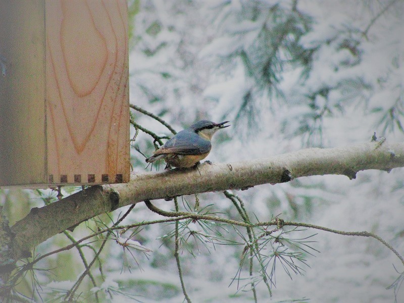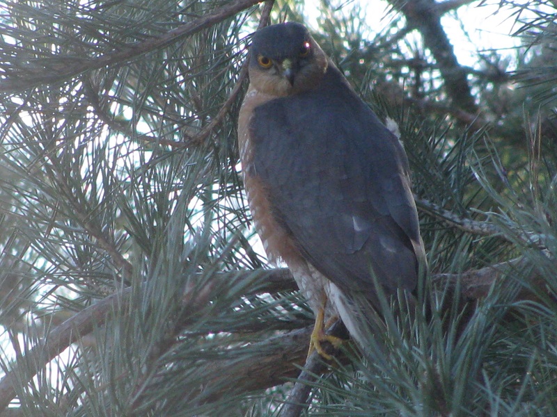 W tygodniu pracy nie mogłam tego zaobserwować , ale w sobotę usłyszałam krzyk sikorek , wyszłam przed dom i spłoszyłam krogulca siedzącego wśród sosen.