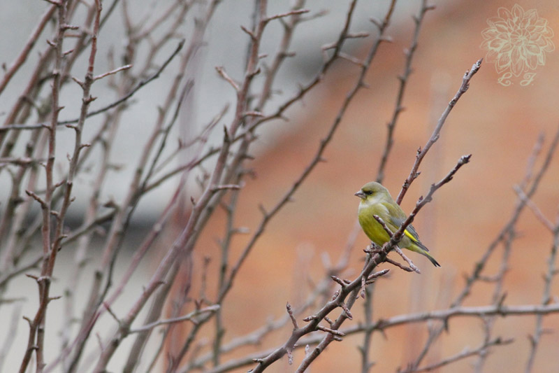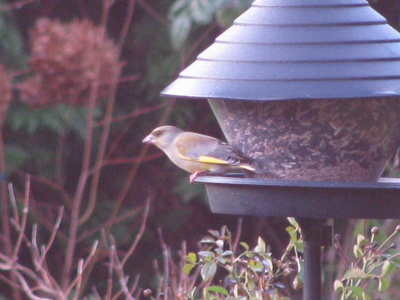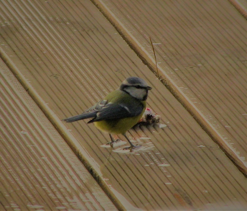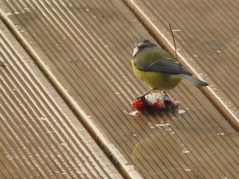 Dziś plus 5. Usiadłam do czatowni w ogrodzie, gdzie mężowy karmnik stoi.