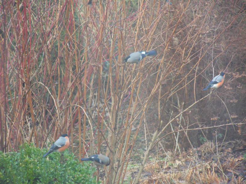 W ogrodzie zostawmy trochę winogron i innych owoców. U mnie chętnie żerują też na tujach (czyże, sikory), cisach (dzwońce, grubodzioby). Dobrze by w ogrodzie były słoneczniki, krzewy i drzewa wydające owoce smaczne dla ptaków: ligustr, jarzębina, dereń biały, kalina itp.