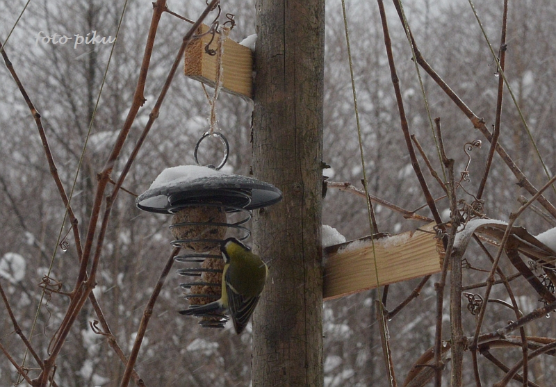 Najlepiej, by były drewniane, ale w kwestii karmników wyjątkowo musiałam się też posiłkować plastikiem, bo zimą w ogrodzie bywam 2 razy w tygodniu i nie mogłabym odpowiednio zadbać o ziarno w odkrytych karmnikach z daszkiem.