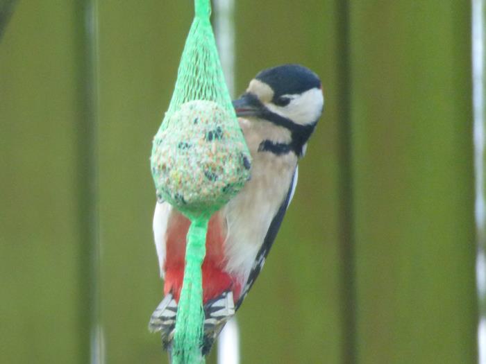Dorzucę też swojego dzięcioła, całą zimę stołował się w naszym karmniku.