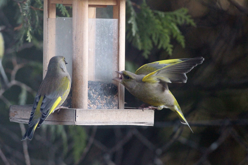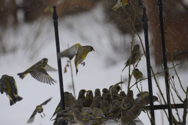 U mnie, jak u większości dokarmiających ptaki zimą, dzwońców było zatrzęsienie. I nawet nie były tak awanturnicze, jak u Miłki ;)