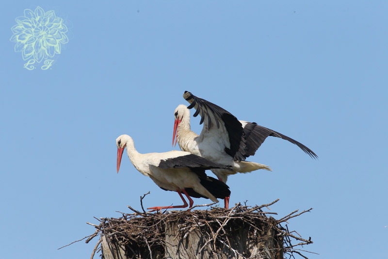 Dobrze, że jestem w zaawansowanym wieku , bo u nas się uważa, że kołujący nad głowa bocian, to zwiastun ciąży. Pamiętam, jak z 20 lat temu, gdy bocian kołował nad moją koleżanką, ta nieparlamentarnymi słowami krzyczała do niego 'S*********, s**********.!!!' Pomogło.