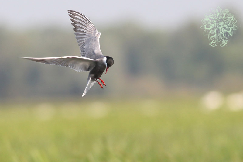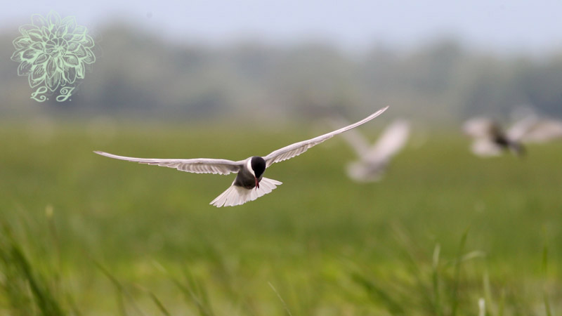 Prawdziwa ucztę obserwacyjna mieliśmy późna wiosna w tym roku. Pojechaliśmy do PN Ujście Warty i nad podmokłymi łąkami niewiele było ptaków, ale krążyły dzielnie rybitwy: białoskrzydłe i białowąse. Wyglądało to raczej na toki niż na żerowanie. Podnosiły i upuszczały źdźbła traw. Rybitwy białowąse obserwowałam również nad Zbiornikiem Siemianówka w Puszczy Białowieskiej. Bardzo podoba mi się jej upierzenie. Cieniowane skrzydła i charakterystyczny wąsik po bokach dzioba. Pożywieniem są owady, mięczaki i drobne kręgowce.