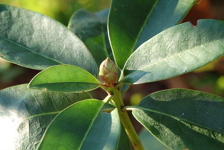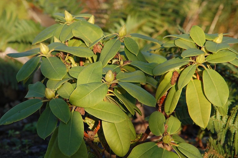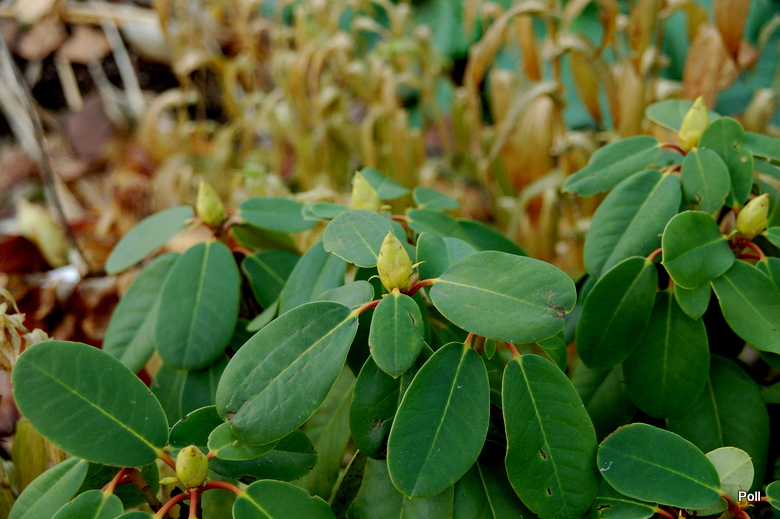 Różanecznik wielkokwiatowy 'Taurus' o czerwonych pąkach zimowych