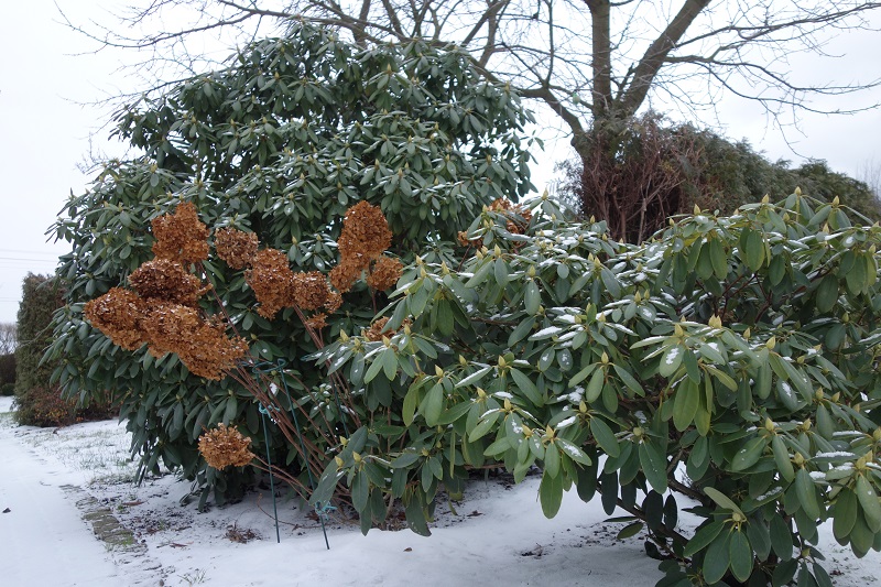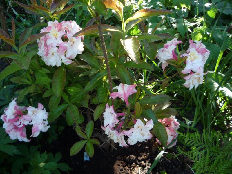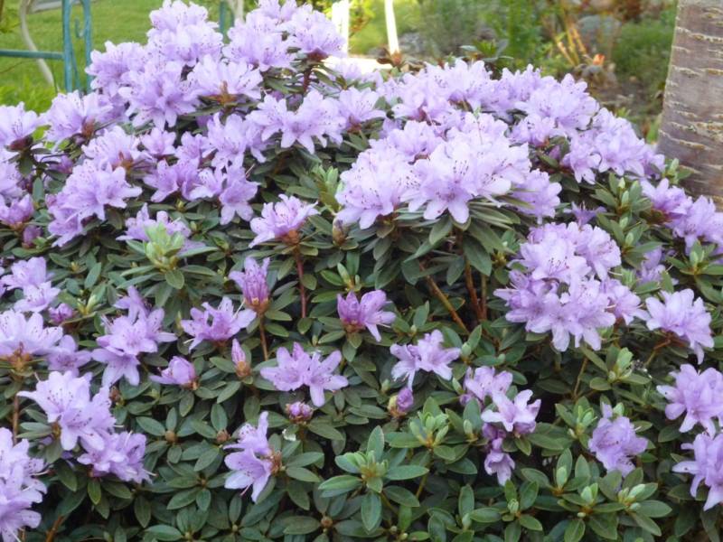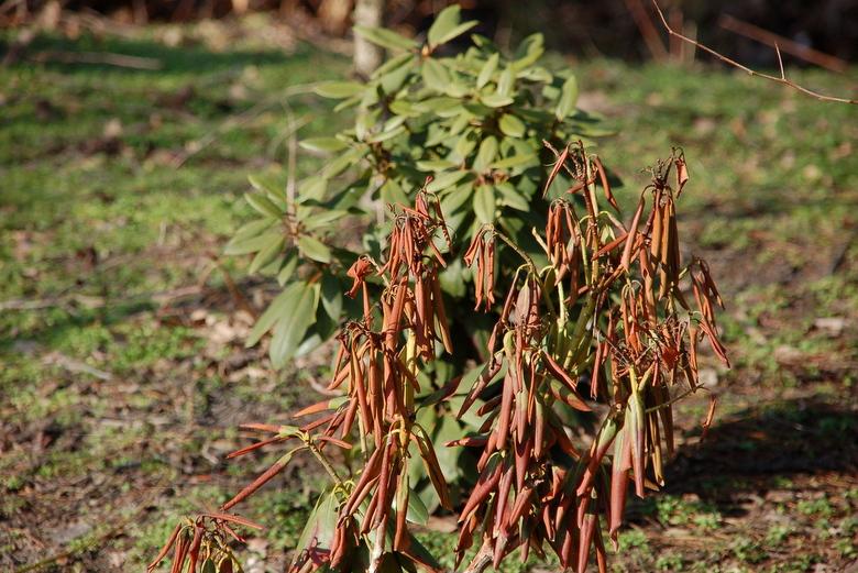 Rhododendron ludlowii albo któraś z jego odmian 'Wren' albo 'Curlew'... 'Wren dorasta po 10 latach do hen... 20 cm przy 40 cm szerokości...