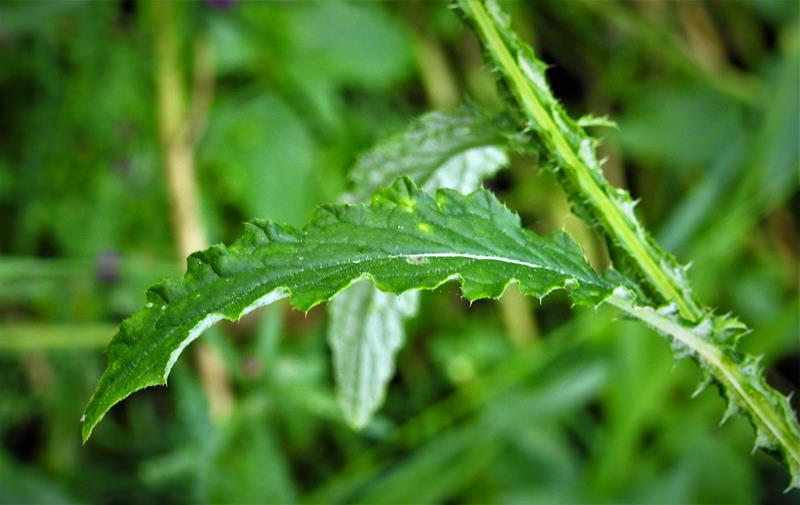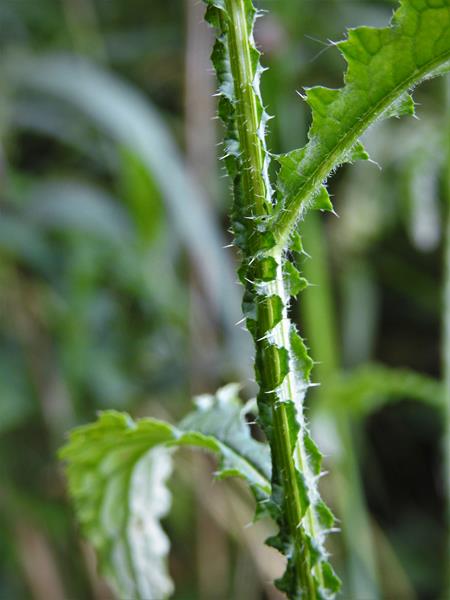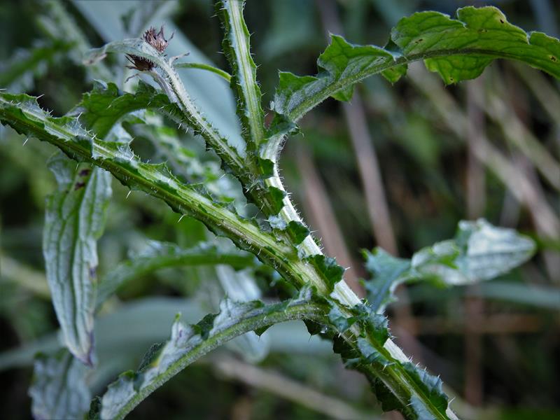 Łodyga: silnie kolczasta Liście: naprzemianległe z kolczastym brzegiem, na spodzie pokryte kutnerem.