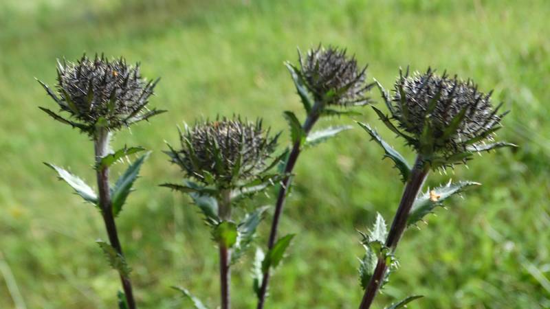 to roślina z rodziny astrowatych, występująca na suchych, piaszczystych łąkach i wrzosowiskach w Europie, w tym w Polsce. Charakteryzuje się srebrzystoszarymi, kolczastymi liśćmi tworzącymi rozetę u nasady, które chronią roślinę przed zgryzaniem przez zwierzęta, oraz sztywnymi, kolczastymi łodygami pokrytymi drobnymi włoskami. Jego duże, kuliste kwiatostany o białawych lub żółtawych odcieniach otwierając się w słoneczne dni, łuski okrywowe kwiatostanu wyposażone są w gałęziste kolce, dodające roślinie charakterystycznego, ochronnego wyglądu. Roślina ta jest chroniona w wielu regionach ze względu na swoje znaczenie ekologiczne i rzadkość występowania, a niegdyś była wykorzystywana w medycynie ludowej, np. jako środek na dolegliwości trawienne. Jej nazwa pochodzi od legendy, że dziewięć jej kwiatów miało chronić przed złem.