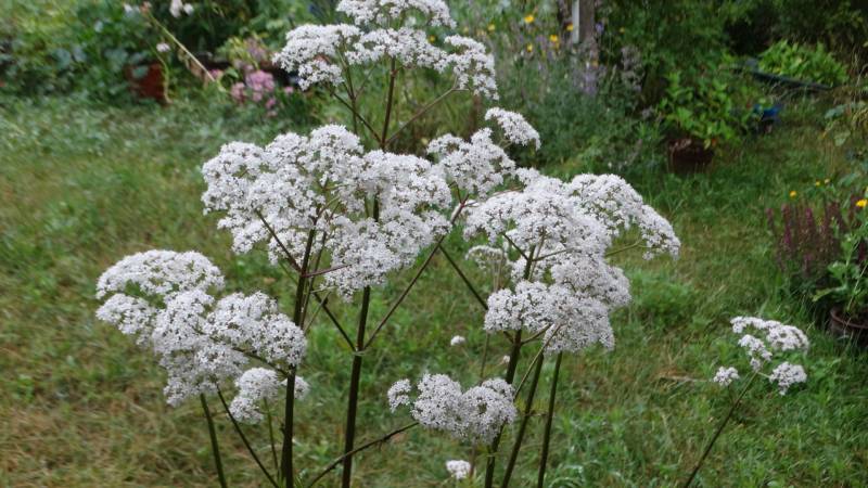 Kwiaty: Drobne, białe lub różowawo-białe, zebrane w baldachogrona na szczytach pędów, o delikatnym, słodkim zapachu; kwitną od czerwca do sierpnia, przyciągając owady zapylające.