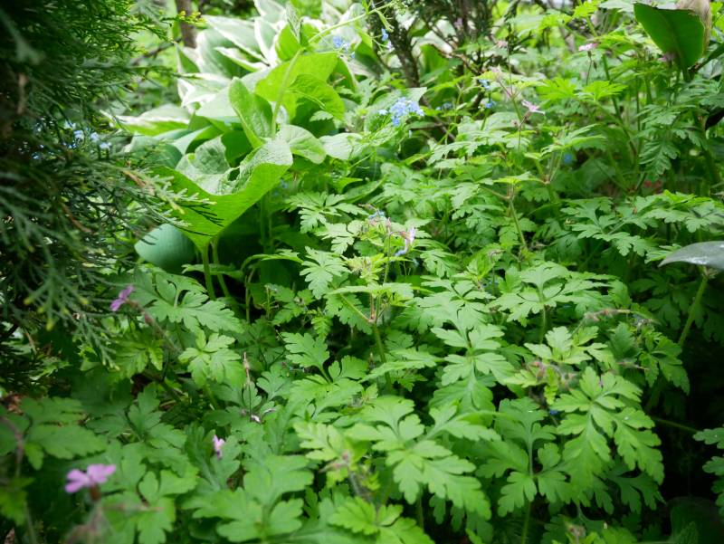 Nie wiem, skąd przywiało go do mojego ogrodu, ale spotykam go od lat.... raz tu, raz ówdzie... W zasadzie, moja aplikacja podpowiadała, ze może to być jakiś gatunek iglicy, ale okazało się, ze to bodziszek cuchnący.