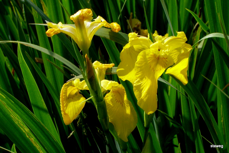 Na jednej polanie rosną obok siebie; Kosaciec żółty i syberyjski.