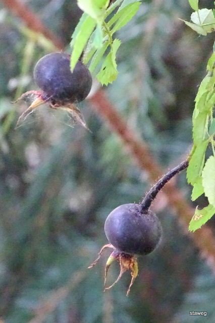 Kiedy zbuduje regularny krzak, długo będzie bardzo dekoracyjnym krzewem dzięki bardzo ciemnym owocom.