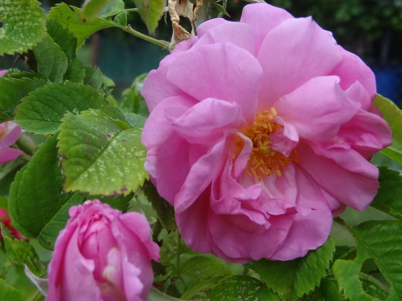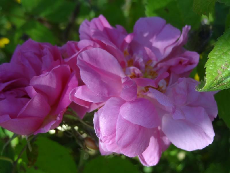 Kwiaty średniej wielkości. Na jednym krzewie mogą rosnąc białe omszone i różowe po jednym z rodziców ('Autumn Damask'). Zapach mocny. Kwitnie obficie bukietami kwiatów w czerwcu i może powtórzyć kwitnienie.