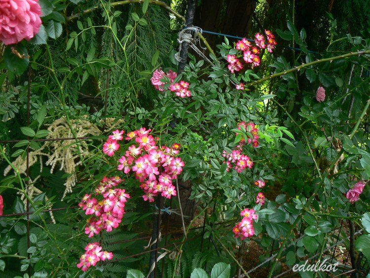 Hodowca: Szilveszter Györy, 2004 Typ: krzew, mini pnąca Kwiaty: karminowoczerwone z białym środkiem, malutkie, pojedyncze, kwitnie sporymi bukiecikami Zapach: łagodny Wielkość: wys. do 2 m, szer. 0,6 m, jako okrywowa do 2 m Mrozoodporność: 5b