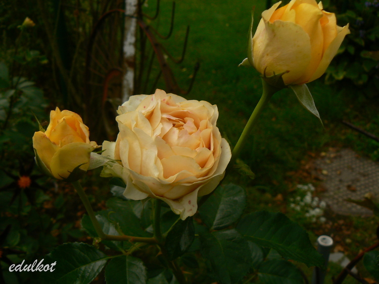 Kwiaty: żywe odcienie głębokiej żółci w miarę otwierania się zmieniają barwę na żółto-kremową, półpełne, płatki lekko falowane ( Ø: 10 cm) powtarza kwitnienie