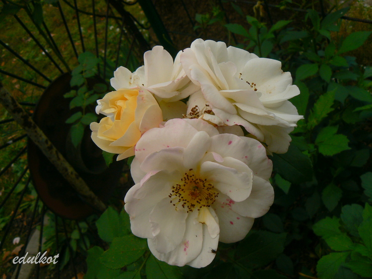 Typ: róża rabatowa/ krzewiasta (kwiatostany wskazują na różę rabatową, ale sposób, w jaki rośnie, upodabnia ją do róży krzewiastej)
