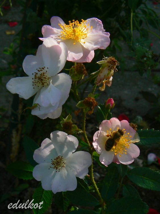 Hodowca: Łukasz Rojewski Typ: parkowa Kwiaty: biało-różowe, pojedyncze, 1,5 cm, kwitnie wiechami cały sezon Zapach intensywny Wielkość: wys. 1,8 m, szer. 1,2 m, Mrozoodporność: wysoka, odporność na choroby wysoka