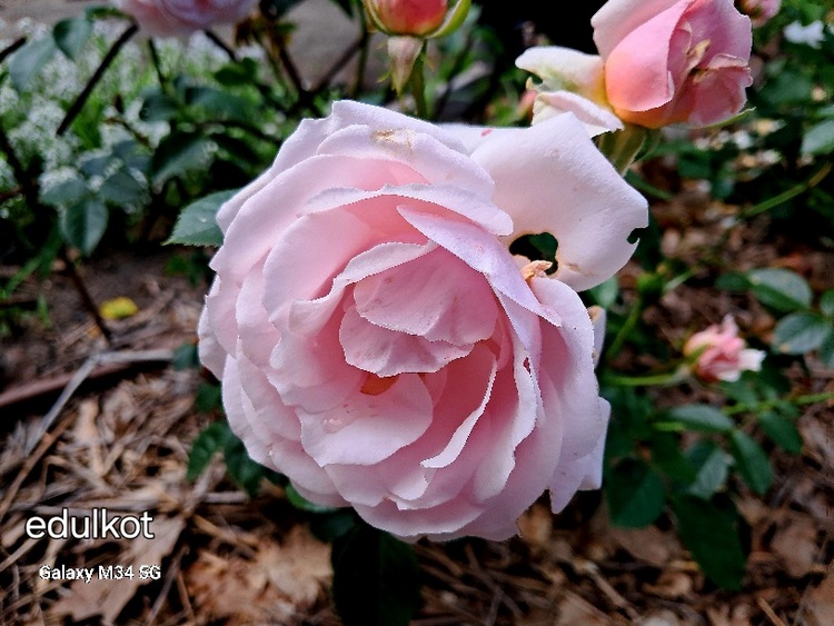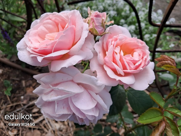 Hodowca: Łukasz Rojewski, Typ: rabatowa, floribunda Kwiaty: jasno-różowe, kremowe, półpełne, 9 cm, kwitnie w dużych wiechach a pędy pod ciężarem przewieszają się dość mocno Zapach umiarkowany Wielkość: wys. 1,4 m, szer. 1,4 m, Mrozoodporność: w normie