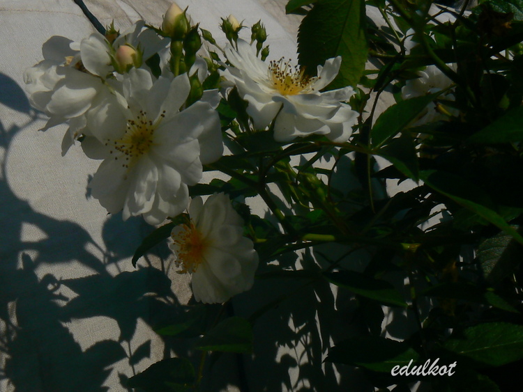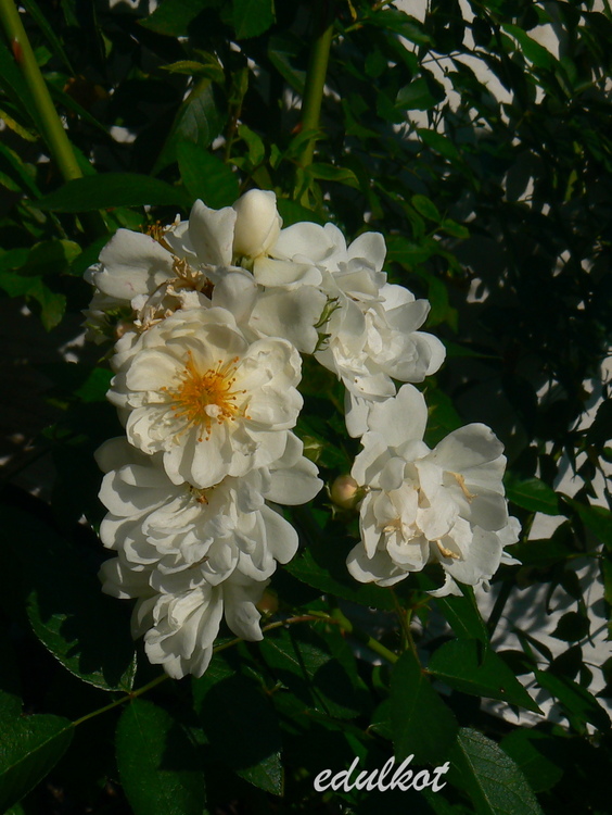 Hodowca: Łukasz Rojewski, 2017 Typ: parkowa Kwiaty: białe, podwójne, drobne, 1,5-2 cm, kwitnie w bukietach cały sezon, samoczyszcząca, Zapach intensywny, piżmowy Wielkość: wys. 1,6 m, szer. 1,5 m, Mrozoodporność: bardzo wysoka, wytrzymuje siarczyste mrozy,