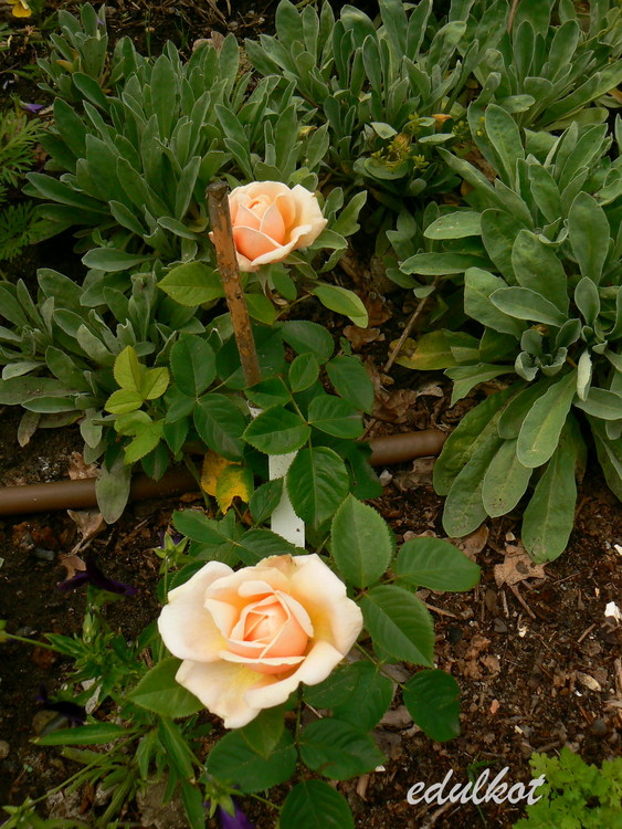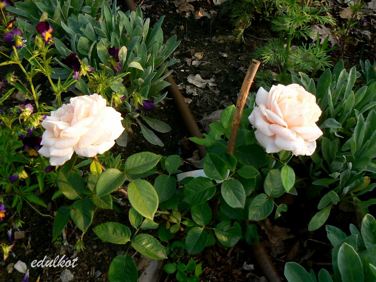 Kwiaty: kremowo-różowe, tzw kolor herbaciany, pełne, 8 cm, kwitnie bukietami cały sezon, nadaje się do wazonów,